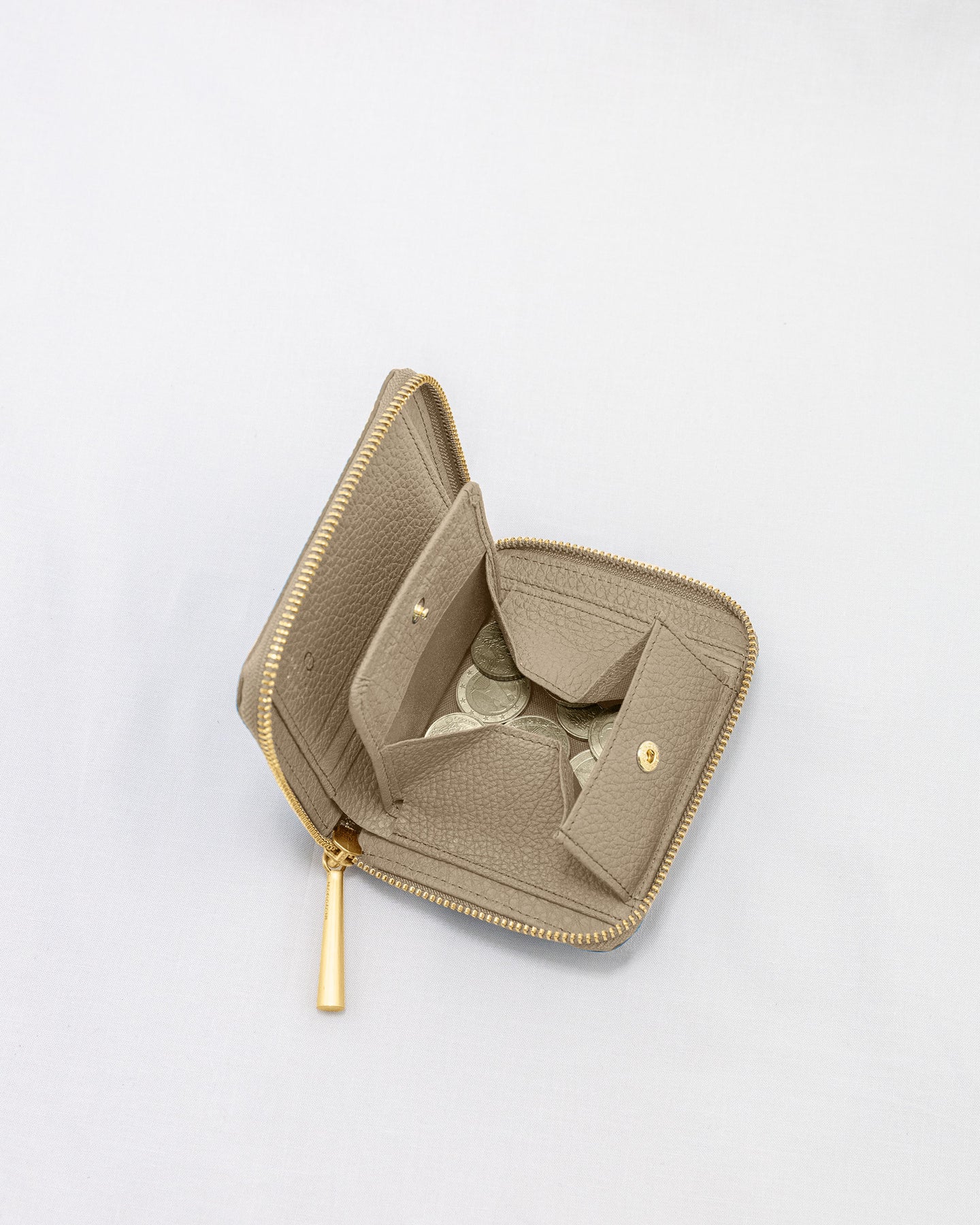 手のひらに収まる三つ折り財布。